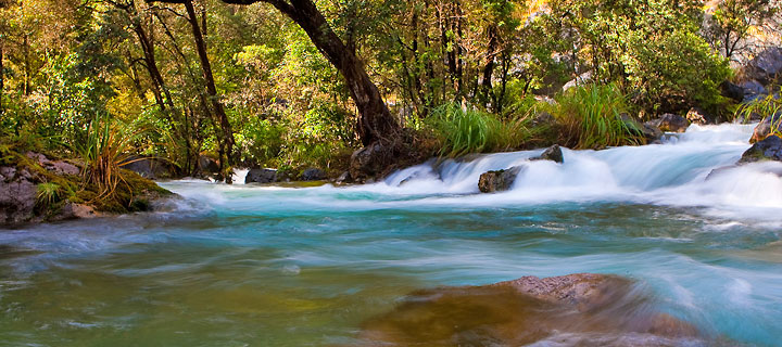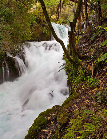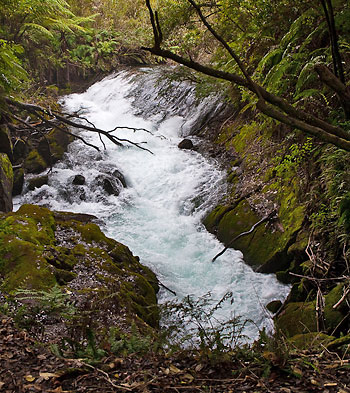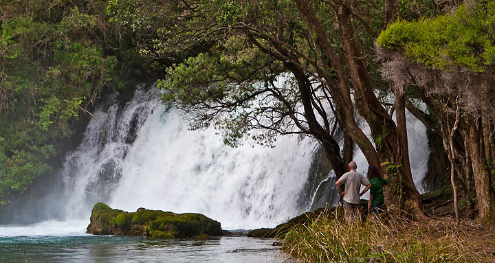 Se den bølgende flod pludselig og uventet forsvinde ned i undergrunden, ned i et underjordisk kammer for derefter komme brusende ud igen, igennem klipperne som et 30m højt vandfald, det spetaculære Tarawera vandfald.